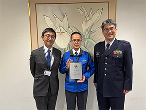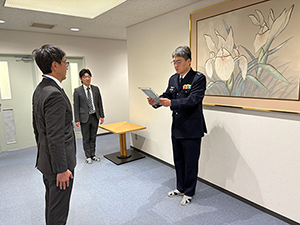 2026年1月19日、ご多忙のなか、自衛隊埼玉地方協力本部 本部長 林1空佐 のご来社を賜り、「3名の予備自衛官の雇用」、「年間5日間の招集訓練に対する業務調整」等の功績により、予備自衛官等協力事業所「地本長認定証」を贈呈して頂きました。